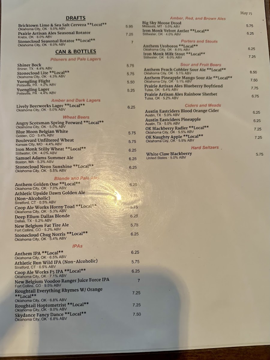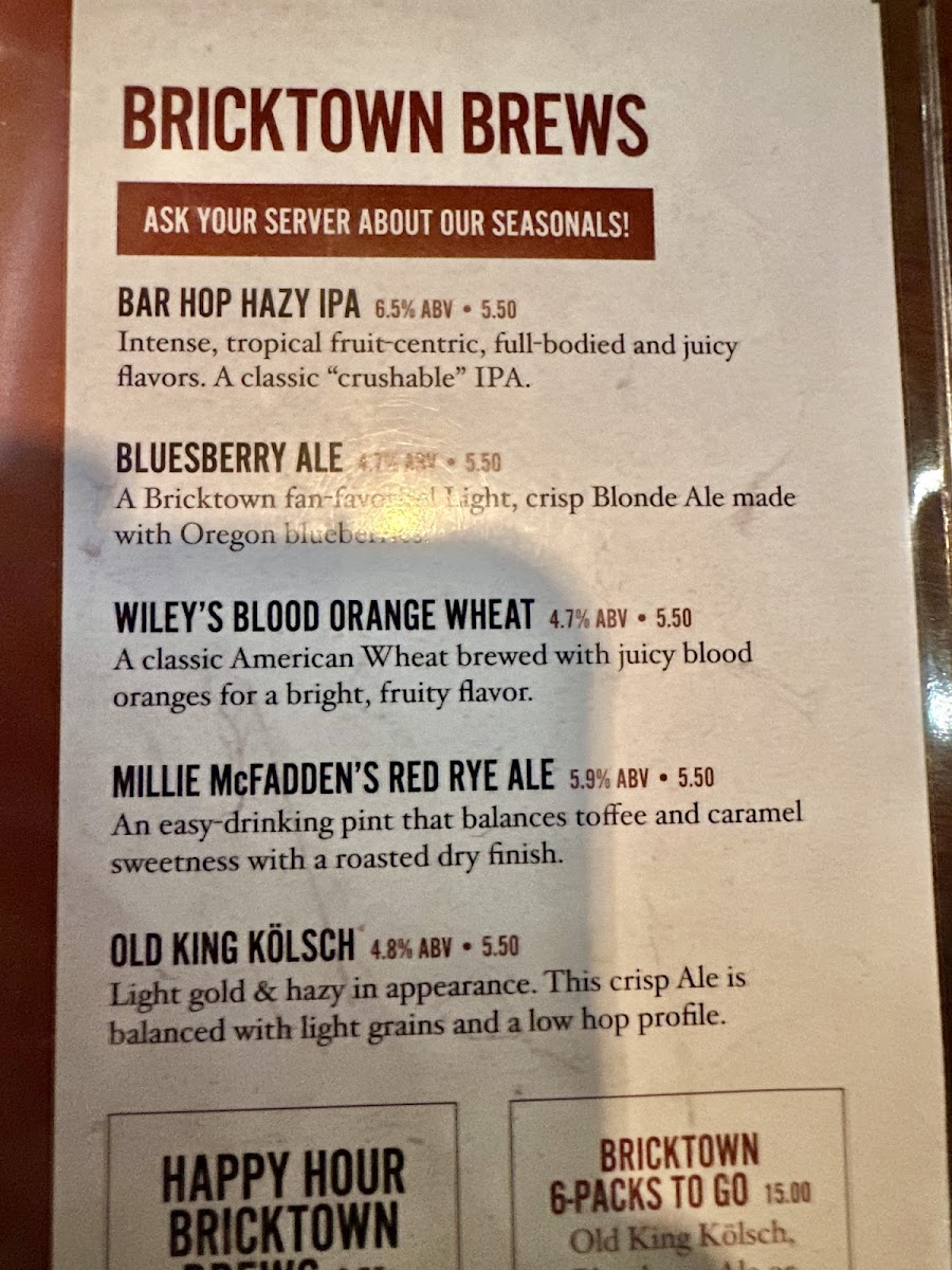 Bricktown Brewery Menu
